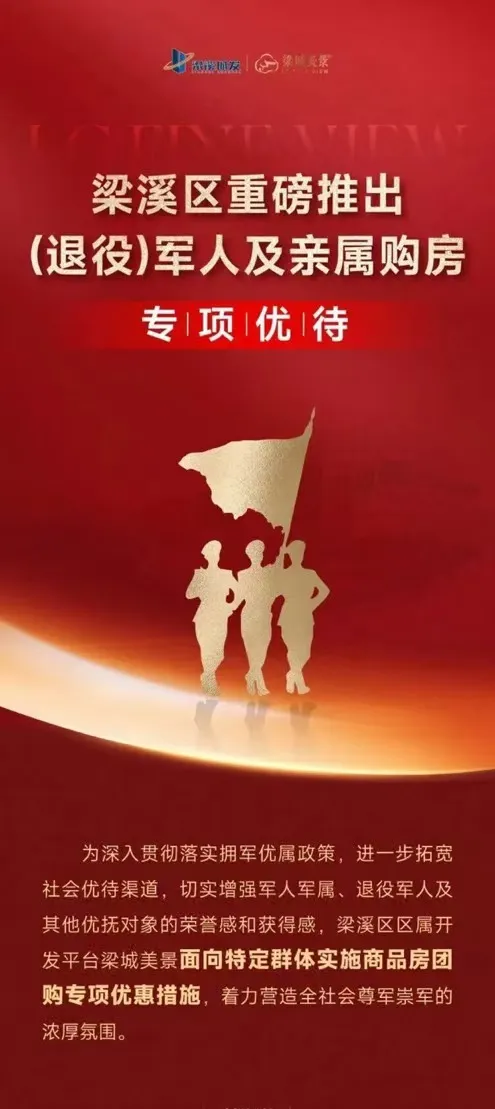 此外,区退役军人事务局拓展与“梁城美景”区级开发平台合作,在全市率先推出面向驻锡部队现役官兵和全国退役军人及其他优抚对象的购房优惠政策。目前驻区部队已有10余人表达在我区购房意向。