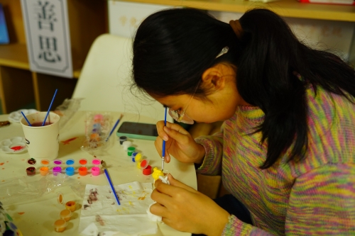 活动现场,洁白的石膏小马、缤纷的颜料整齐摆放,孩子们围坐在桌前,瞬间投入创作。有的孩子为小马勾勒喜庆纹样,有的搭配撞色潮酷造型,还有的细心描绘灵动表情,连大朋友也忍不住加入,和孩子们一起沉浸式创作。原本单调的石膏马,在大家的巧手下变得鲜活多彩,每一件都是独一无二的创意之作。